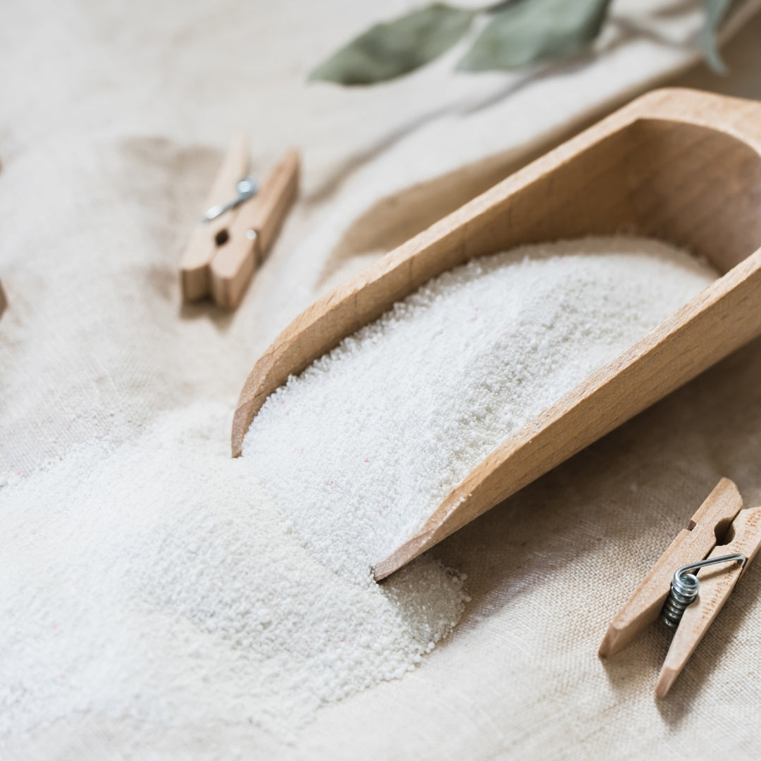- 1 houten schepje toevoegen aan je reguliere waspoeder bij witte of sterk vervuilde was